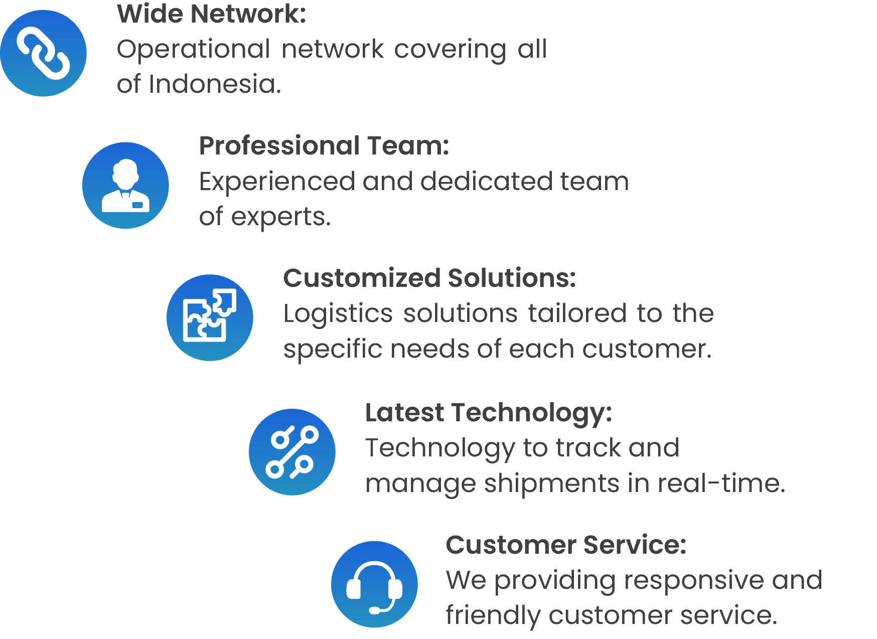 To be a globally recognized leader in the logistics industry by providing the best services and integrated solutions that meet customer needs.